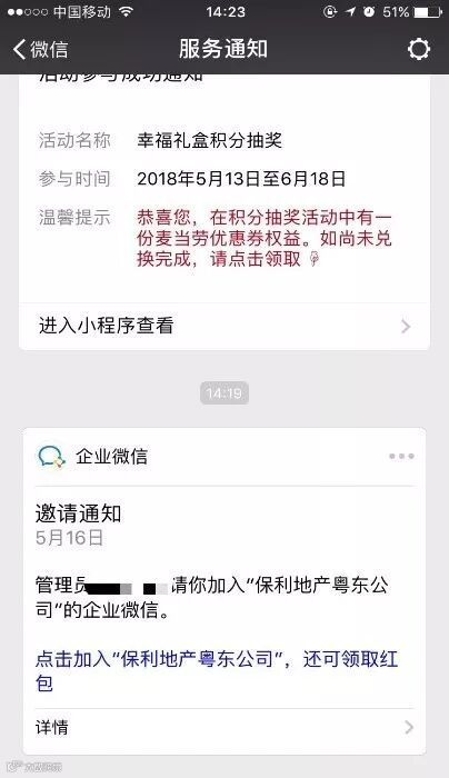1. 在微信的‘服务通知’里点击小编发送的企业微信加入邀请。