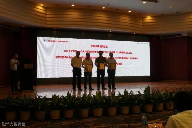 会议期间,根据《保利粤东房地产开发有限公司月度巡检及供方激励管理办法》的相关规定,公司副总经理闫志强总对第一次过程评估中取得前三的土建总包颁发了奖牌。