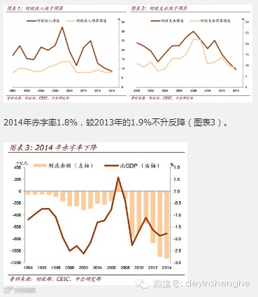 总体上,2014年财政政策不积极,不仅与经济增长下降所要求的积极财政政策相去甚远,而且赤字率下降,对于经济增长放缓更是雪上加霜。
