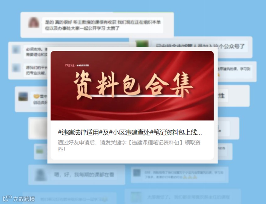 此外,针对大家的强烈要求,课程助理阿课也整理了违建资料包等体系化资料,领取活动如火如荼。
