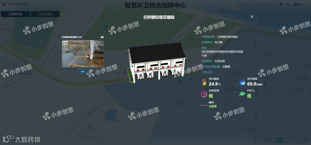 为解决百姓关注的堵点问题,小步创想通过在垃圾中转站安装空气异味传感器,实时监测中转站空气中氨气和硫化氢等异味气体成分情况,一旦超出一定浓度系统会自动报警,并将报警信息发送至指挥中心,管理人员一键指派工作人员和车辆前去处置,确保异味及时消除。