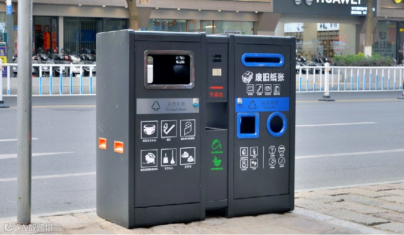 在主要道路公交站台,试点投入了一款新型果壳箱,有6个投口,可回收物细分为3个投入口,还增加了烟头投放口和食物残渣收集口,文字、图形清晰易懂,方便市民的分类投放。