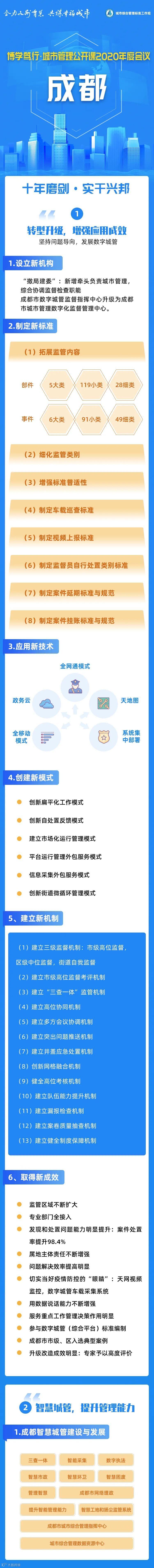 近年来成都市结合新时代新要求,对城市管理进行转型升级,打牢基础提升效率,通过设立新机构,制定新标准,应用新技术,创建新模式,建立新机制来推进城市综合管理服务的能力提升,实现城市精细化的管理。