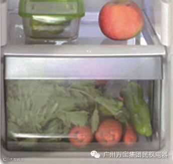 冰箱采用顶部LED灯照明,功耗低,亮度高、不发热加上全透明内饰使冰箱内部显得格外明亮。