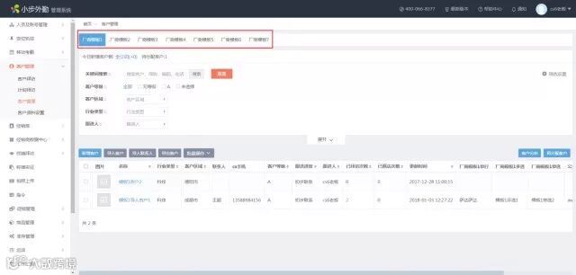 2.3 客户管理列表按“模板”设置,手机端和后台均可按找不同的客户模板查看、添加客户资料。
