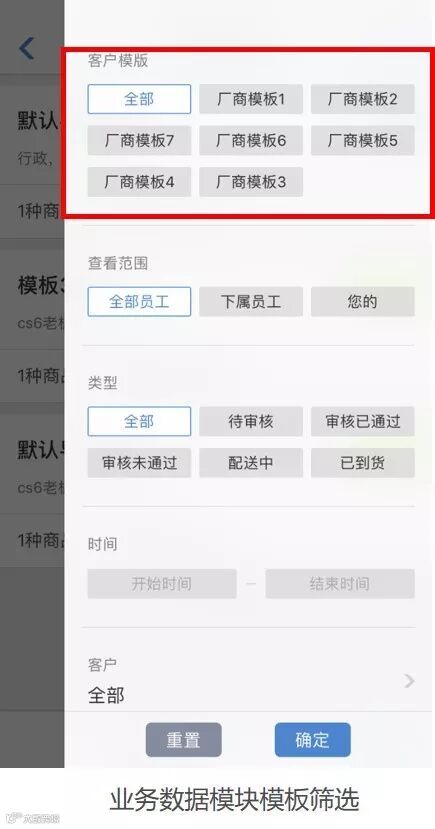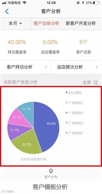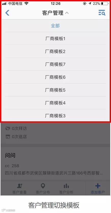 2.4 客户分布按模板查看,手机端和后台均可按模块查看分布信息,不同渠道、不同类型客户市场布局一目了然。