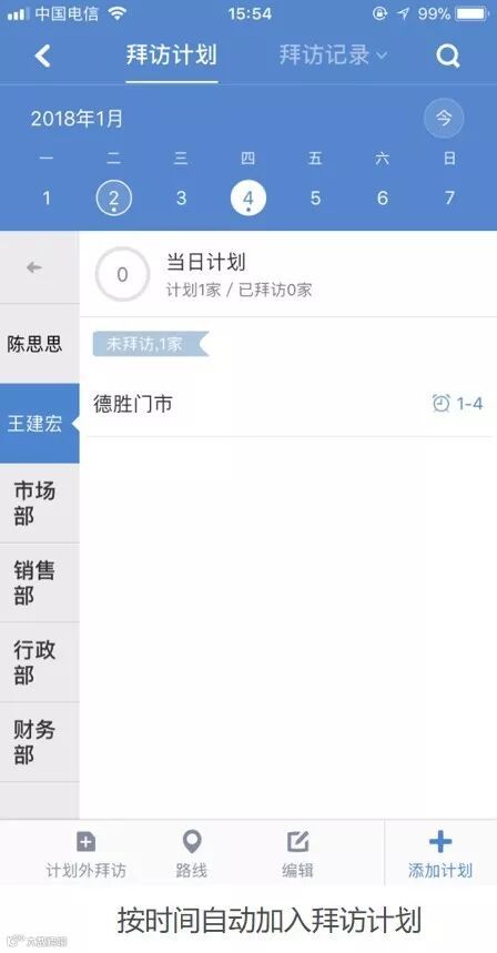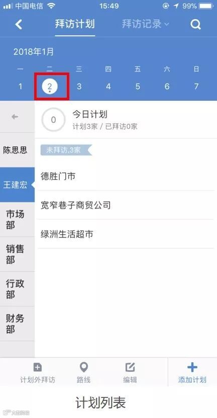 1.4 拜访计划列表-后台全新升级,可按日期显示当日员工的计划列表,还可为员工单独设置拜访计划