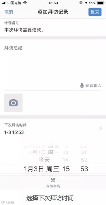 1.5 填写拜访记录时,顺手添加下次拜访时间,并自动设置相应提醒,避免遗忘下次拜访客户。