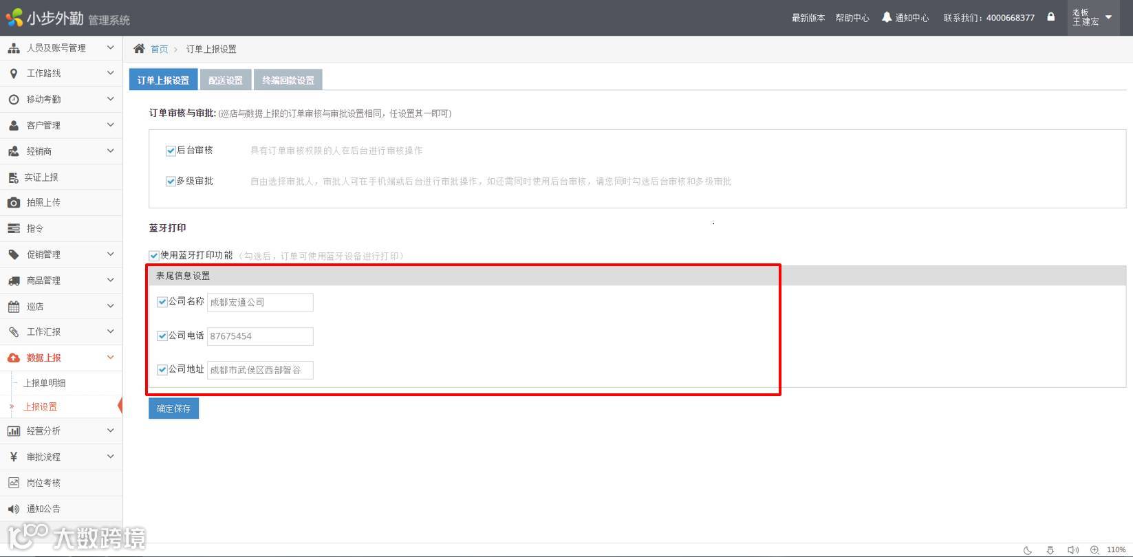 2、蓝牙打印优化:蓝牙打印新增公司名称、地址、电话,且可自定义配置,满足企业实际业务需求。