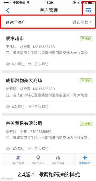 1、 客户管理优化:列表内容重新排版,优化搜索和筛选样式,信息查看一目了然。