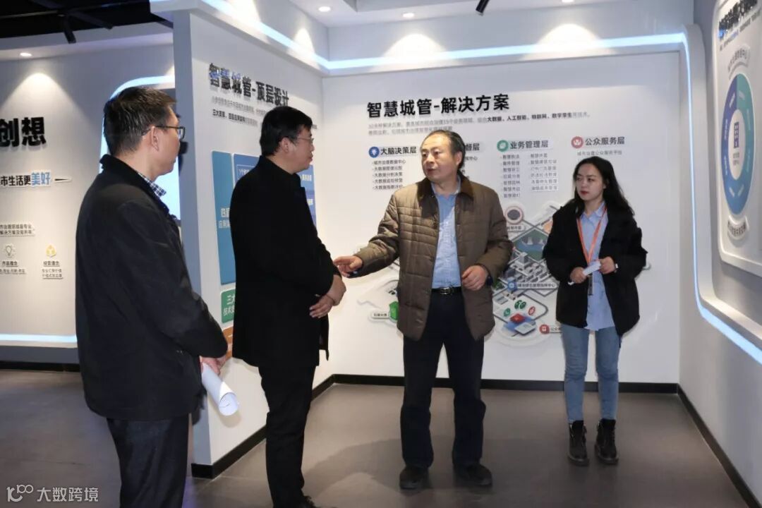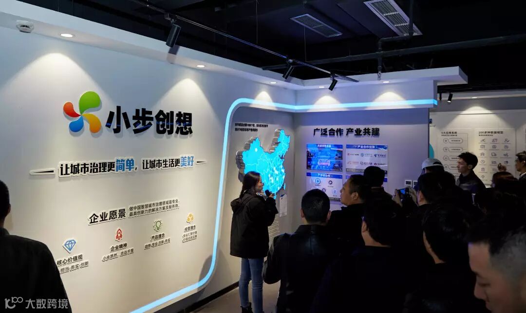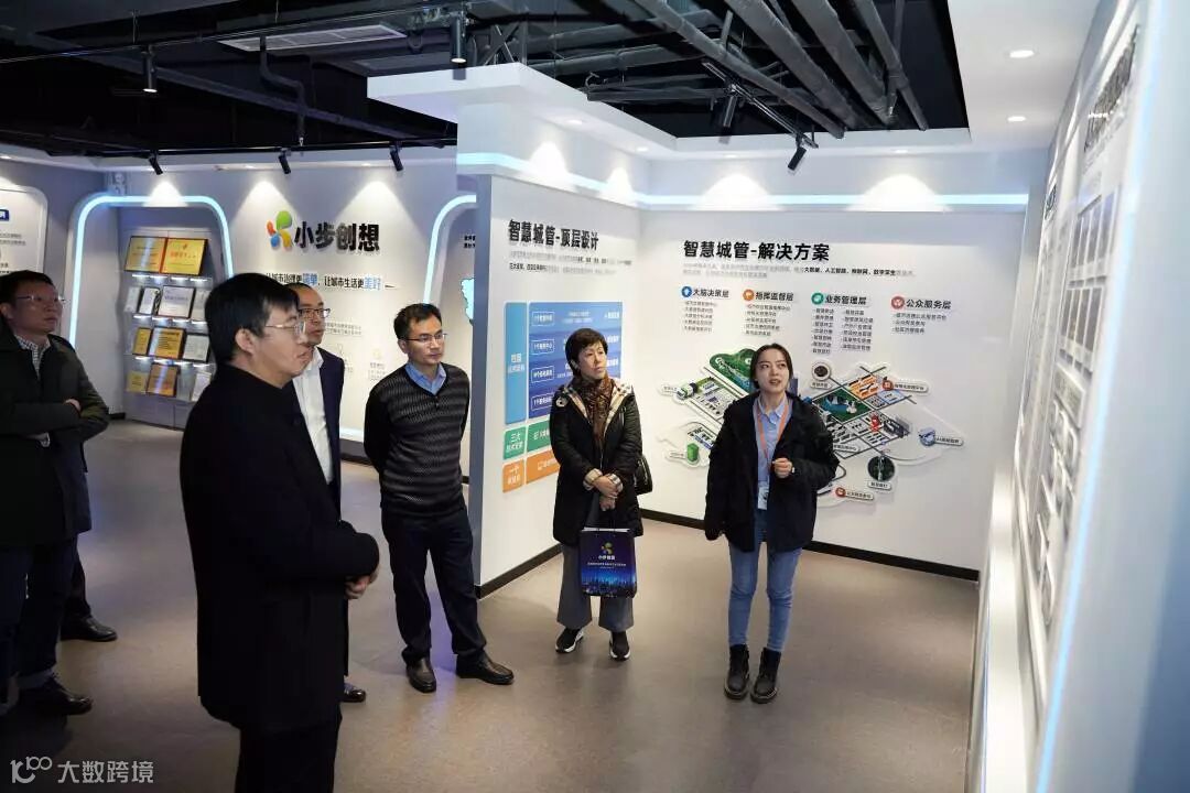 在小步创想相关领导及工作人员的陪同下,住建部城市管理监督局领导一行参观了小步创想智慧城管科技展厅,通过讲解员讲解、现场展示、企业形象宣传片等多种方式,深入了解了小步创想发展历程、核心优势、技术实力、校企合作等情况。