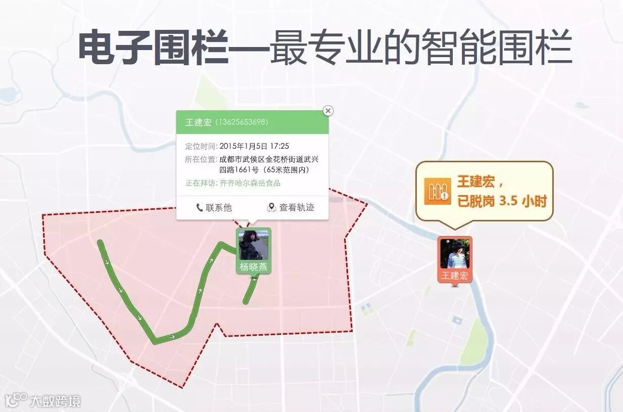 2、工作轨迹+电子围栏+拍照上传:
