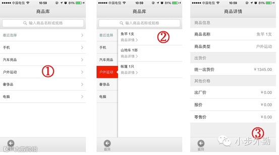 在多库存管理方面:小步外勤根据哇哈哈的需求,定制开发了“商品库”功能,功能具有随时查看商品库存、报价、种类,省去传统电话查询的麻烦;同时商品数据更新更及时,极大提高业务员工作效率,加速下单流程。极大提升员工工作效率,现场出单为一线人员提供更便捷的工作方式。