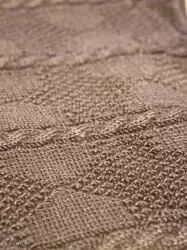 普通图案包括海浪、扶梯、绳子和旗帜等,采用平针、反针、频振图案、大绞丝、绞花、罗纹等针法工艺。用平针图案来呈现索具、港湾、天路,之字形大绞丝用来描绘悬崖,双之字形则表示了婚姻生活的跌宕起伏。各种各样的渔网、龙虾、蟹笼图案用菱形格纹进行描绘,双条辫针织用于诠释沙滩上的串串脚印。