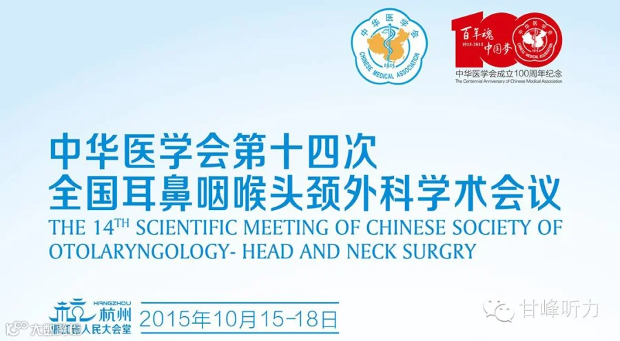 由中华医学会、中华医学会耳鼻咽喉头颈外科学分会主办的中华医学会【第十四次全国耳鼻咽喉头颈外科学术会议】于2015年10月15~18日在折江省杭州市召开。本次会议全国一类学术年会,与会代表约合 3000 余人。两年一次的全国耳鼻咽喉头颈外科学学术会议是国内耳鼻咽喉头颈外科学界水平和规格最高的学术会议,也是展示我国耳鼻咽喉头颈外科学最新研究成果、推动学科全面发展的一个重要平台,更是有重要影响力、耳鼻咽喉头颈外科学同道广泛参与的业界盛会。