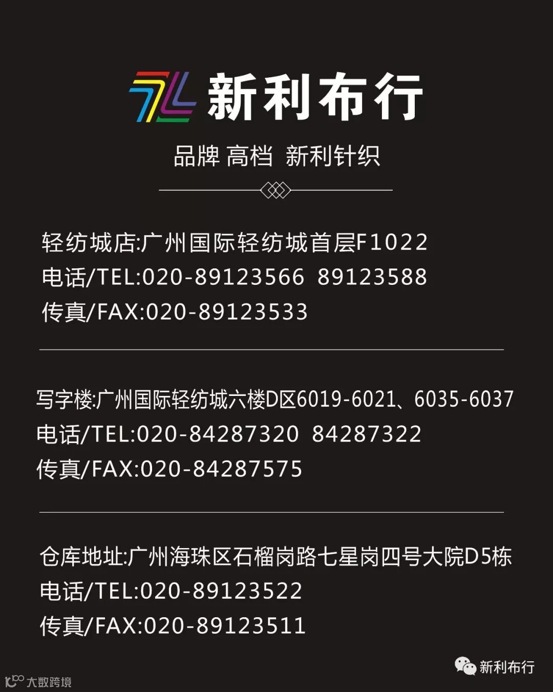 更多潮流面料资讯,欢迎扫码登陆新利布行阿里巴巴店铺浏览~
