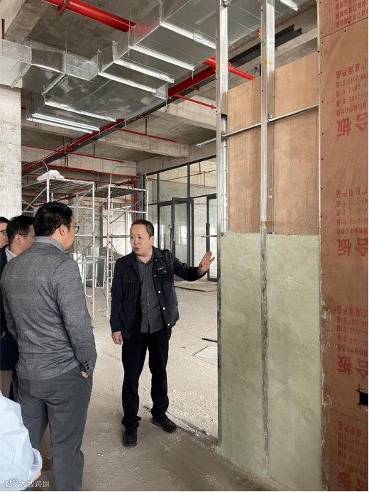 3月14日,景德镇市国信工程管理有限公司董事长高新松一行到合盛新办公楼考察安泰公司MAA防火保温内墙材料施工现场,实地调研安泰公司新材料在内墙建筑领域的应用情况以及内墙构建、外墙工艺等。