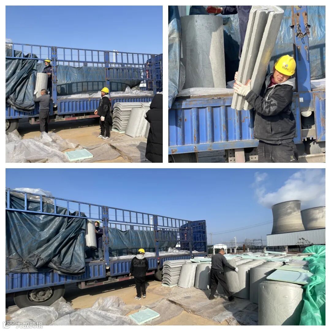 据悉,此次项目MAA管道保温材料共计数量6车,管道长度达一千多米。数量多、任务重,生产部又面临人手紧张,交期紧迫等情况,工人们克服寒潮天气的影响,开足马力生产,稳步推进项目供应进度,通过借调装卸人手,妥善安排车辆场地。为了保障装车安全,装卸工、起重工、仓管员3人1组,生产厂长现场进行监督指导,经过几天的奋战,所有MAA管道保温材料有序装车完成。
