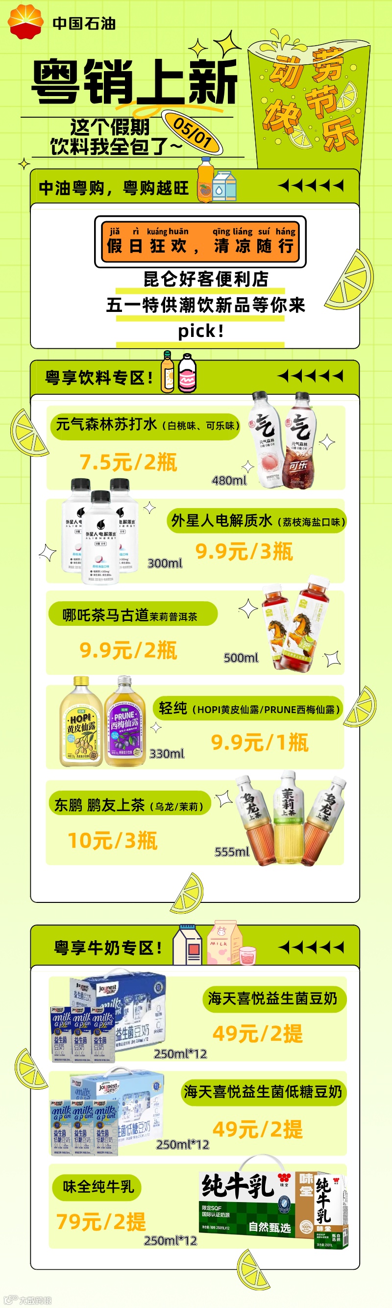 从未有过的价格,从未有过的优惠。昆享商品、好客便利店,这个五一出行饮料我全包啦~