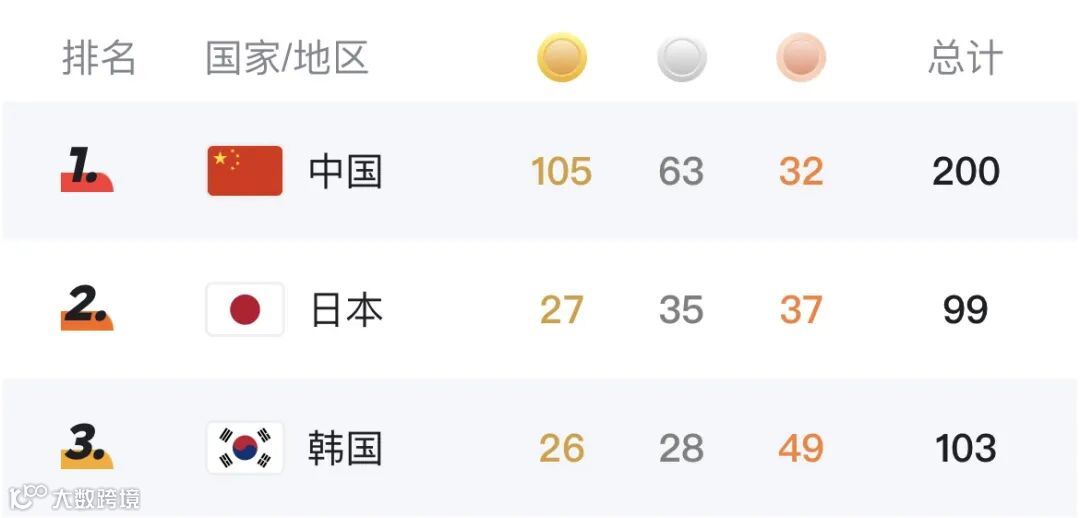 目前中国队已经获得105枚金牌🥳