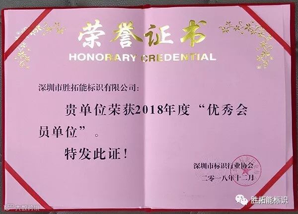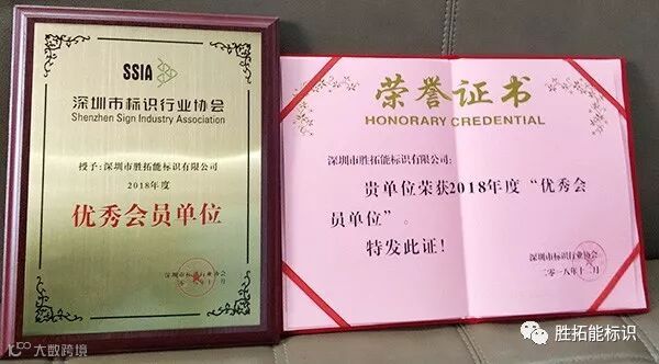 深圳市胜拓能标识有限公司荣获2018年度“优秀会员单位”,主办方对胜拓能标识给以肯定和嘉奖。