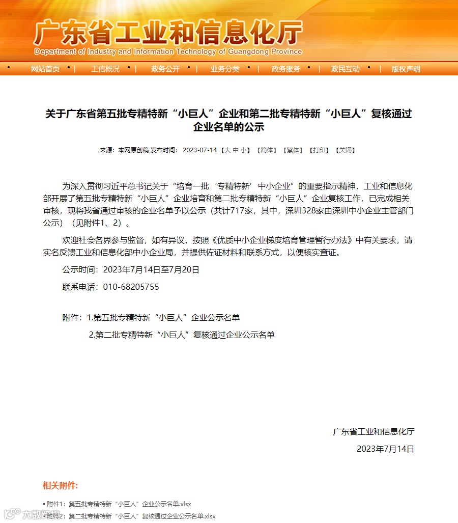 2023年7月14日,广东省工业和信息化厅发布了第五批专精特新“小巨人”企业名单的公示,广东正业科技股份有限公司(以下简称“正业科技”)凭借在工业检测和新能源领域的技术实力与市场成果,荣获国家级专精特新“小巨人”企业称号。