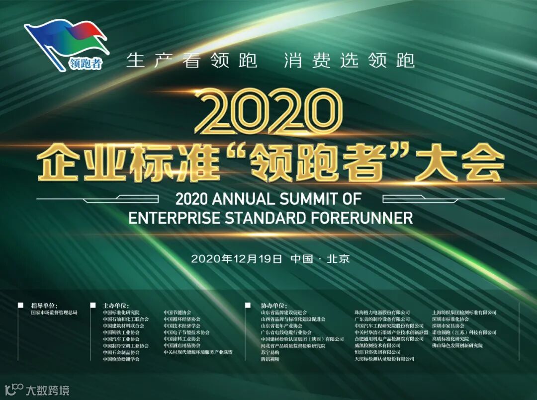 2020年12月19日,由国家市场监督管理总局指导,中国标准化研究院联合相关行业协会在北京召开2020年企业标准“领跑者”大会,深入总结标准“领跑”助力质量“领跑”经验做法,促进企业标准“领跑者”产品成为消费者心目中“高标准”、“强品质”的代名词,营造生产看“领跑”,消费选“领跑”的氛围,为“十四五”期间建立先进标准供给体系、支撑质量提升建言献策,同时发布2020年企业标准“领跑者”名单、优秀第三方评估机构名单、百项“领跑者”标准,十大行业协会共同发布“关于积极实施企业标准‘领跑者’制度加快推进产业高质量发展”的联合倡议等重要议程。