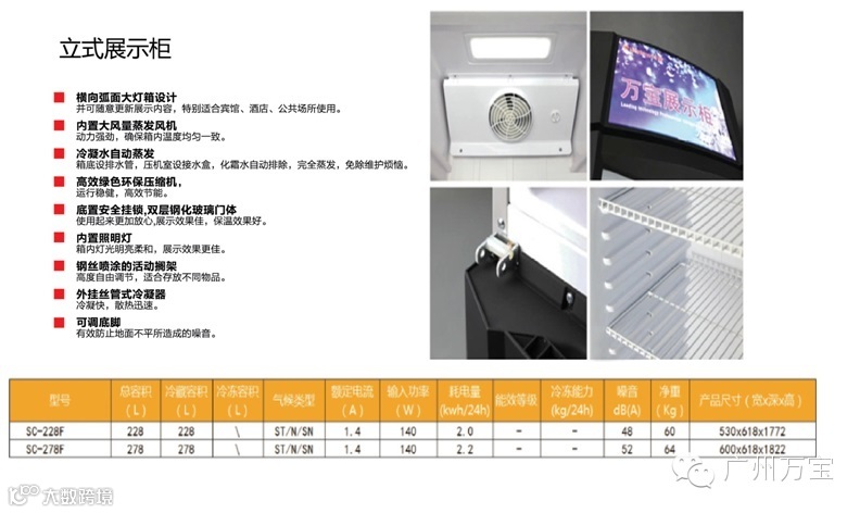 此次小编以万宝立式展示柜 SC-278F为列,向大家介绍下产品的特点: