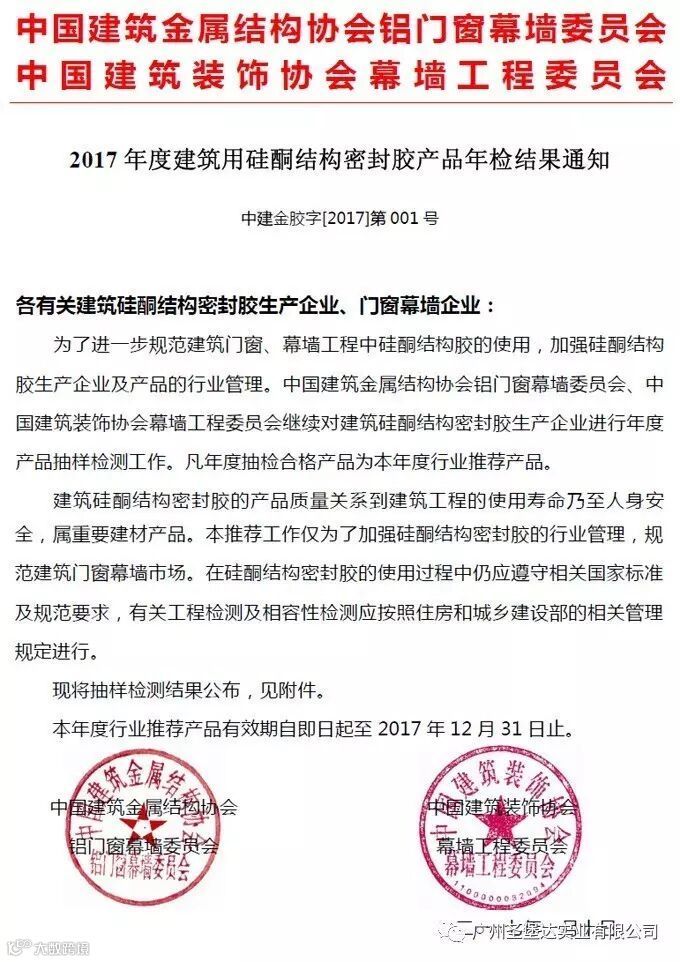 2017年度建筑用硅酮结构密封胶产品年检结果通知