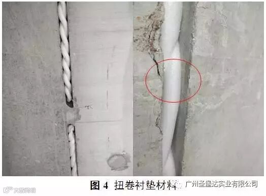 装配式建筑密封胶施工,应填塞衬垫材料。选用衬垫材料时,应根据胶缝尺寸选择比胶缝略大的衬垫材料,通常情况下,受装配误差等影响,胶缝大小不一,应配备多几种不同尺寸的泡沫棒。填塞时,不宜扭卷衬垫材料(如图4所示),同时保持衬垫材料无破损,如有破损,破损面应朝里,防止与密封胶接触而产生气泡。衬垫材料填塞后,需保证有足够的胶缝深度。施工过程中应做到当天打胶当天填塞衬垫材料,防止衬垫材料受潮而影响施工。