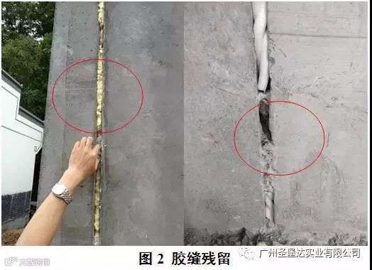 装配式建筑预制外墙板,多为混凝土预制板,混凝土表面容易残留松散砂浆、浮沉、发泡胶等物质(如图2所示),影响密封胶粘接。