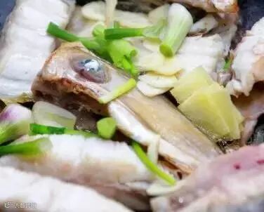 原料:鲜鱼1条、姜片25克、香菇25克、黄酒15克、白糖、精盐、味精、笋片、熟火腿片、麻油适量,胡椒粉少许。