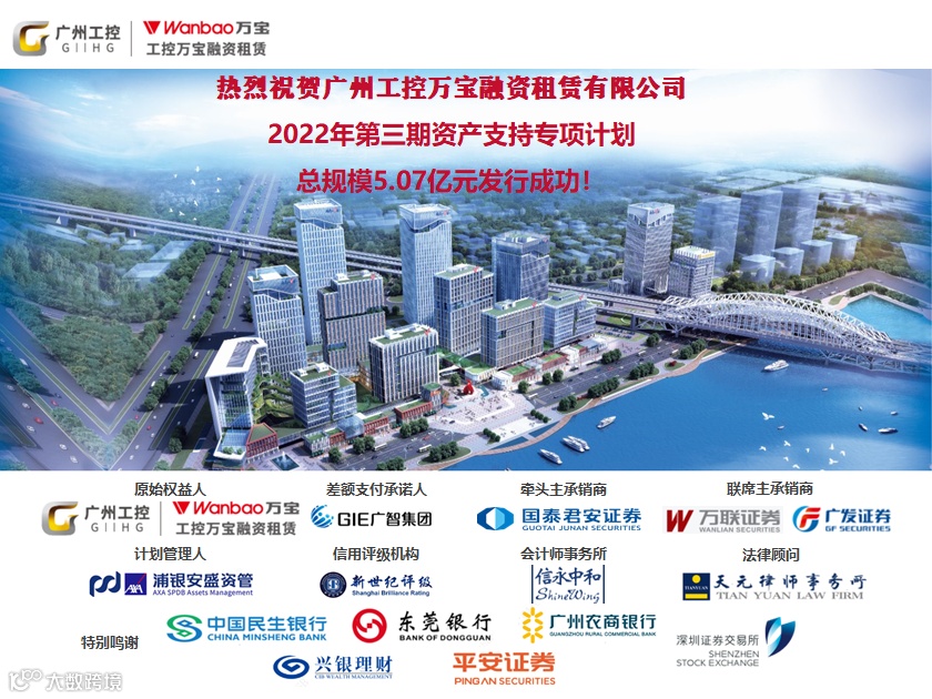 本期项目继续由广州智能装备产业集团担任差额支付承诺人,国泰君安担任作主承销商,万联证券以及广发证券担任联席主承销商。公司自2021年9月以来,已在深交所连续发行了5期租赁ABS项目,共计融资约25亿元,纵深开发融资渠道,支持业务拓展,充分利用资金优势推进实体经济发展。本期募集的资金将继续推动公司前端业务开拓,并蓄力公司资产体量持续增长。