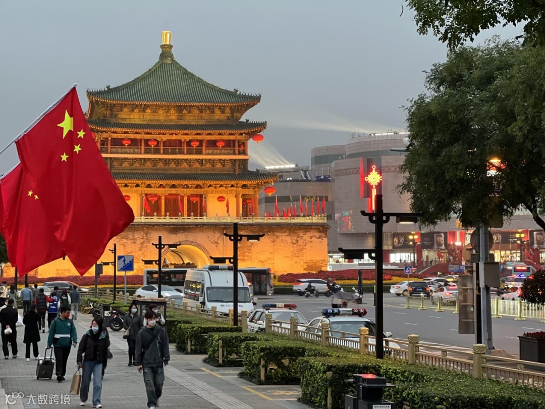 国庆期间的西安钟楼,街道两侧装饰了鲜艳的五星红旗,华灯初上,古建与现代相互交融,静静地向游人诉说着百年的历史。同时,这里也见证着新中国成立至今的变迁。在75周年来临之际,愿祖国繁荣昌盛,山河景明,越来越好。
