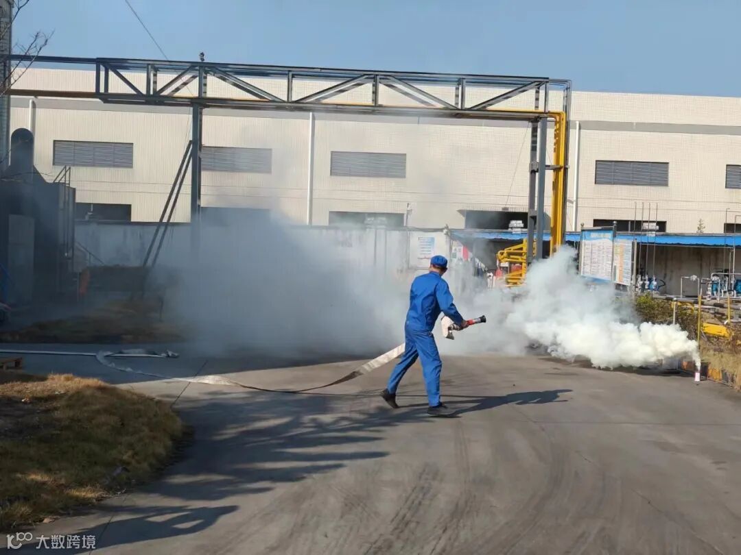 本次演习演练以液化石油气储罐泄漏为事故背景,全员进行参与,进行紧急处理,本次演练分为现场模拟泄露、洒水增湿、抢险组紧急抢险、其余人员紧急疏散几个过程,整个演练过程约 30分钟,演练分工明确,责任到人。