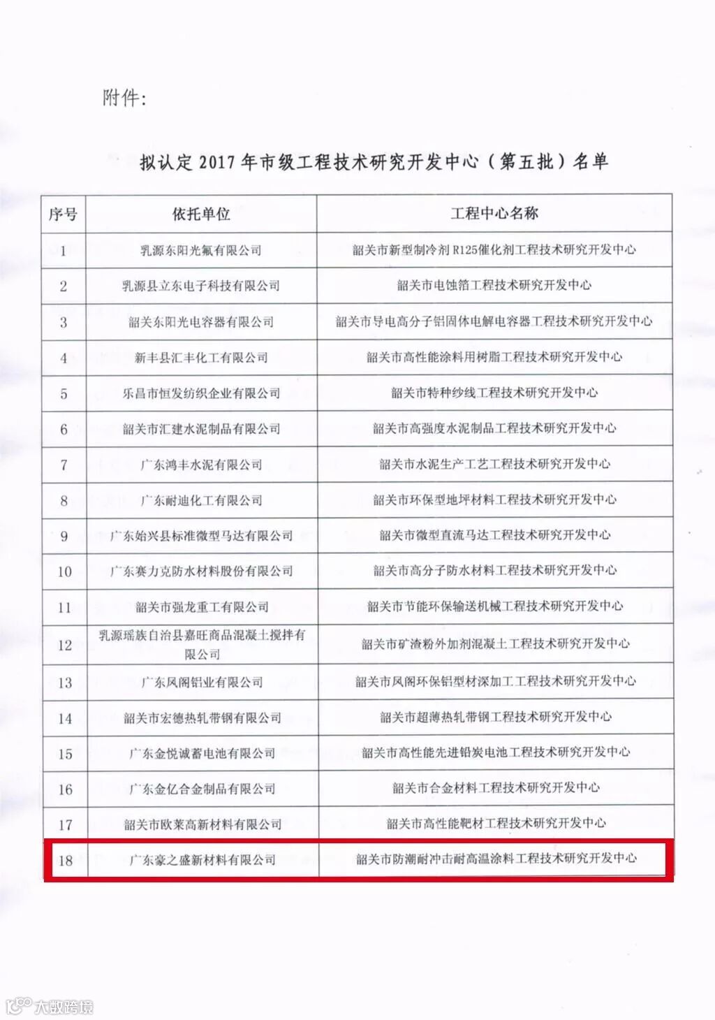 恭贺广东豪之盛新材料有限公司上榜2017年市级工程技术研究开发中心(第五批)拟认定组建名单公示!