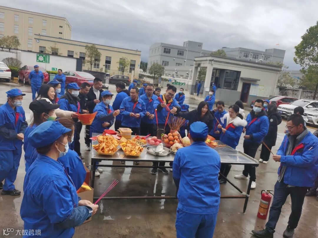 大年初八,开年上班第一天上午,公司门前拜神,全体员工共聚一堂,举行公司2021新年开工仪式。