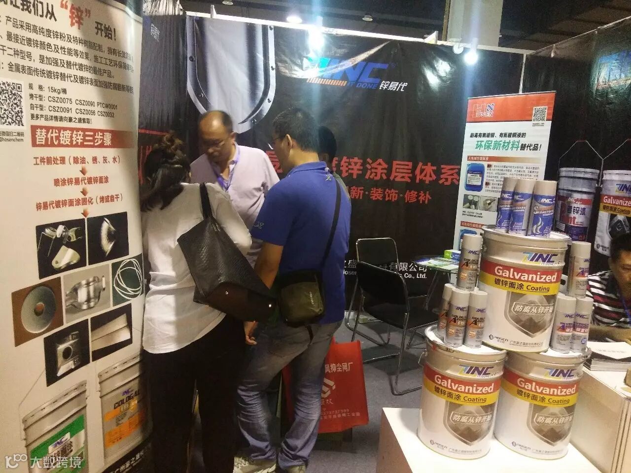 本次展会展示的产品除了我们的锌易代系列防腐漆;防腐首选“锌易代镀锌面涂“、“锌易代冷喷锌“、“锌易代镀锌漆“、“锌易代银富锌“,更捎上了我们新推出的水性镀锌喷剂,吸引一众的游客上前问津,门庭若市。