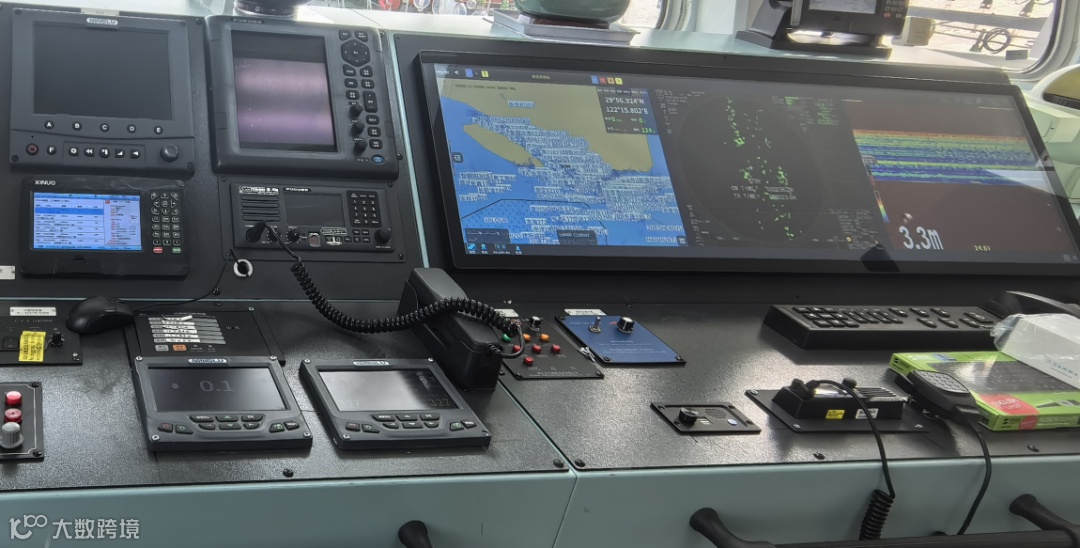 传统的渔船驾驶室,导航、通信、探测等设备(计程仪、风速风向仪、鱼探仪