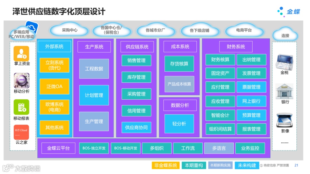 构建了客户体验平台,打造了泽世集团全球化员工使用,加强了全产业链数字化闭环协作,实现了采销产存协作一体;构建了生态系统平台,通过集团业务流程配置,实现了非洲销售方对原材料的需求能够实时传递到国内进行采购,确保了库存的合理范围,提升了库存周转率;完善了数据分析平台实现集团业务发生到财务核算归集到一个平台内,数据分析实时化、准确化;实现非洲当地零售整合到ERP系统中,提升业务运营效率的同时,能够准确知晓各门店营运情况,提高了门店管理水平;整合了信息系统平台,实现泽世全球员工在一套系统内按国家、按城市、按地区、按网点分级管控,数据集中管理,风险清晰可控,提升了业务协作效率。