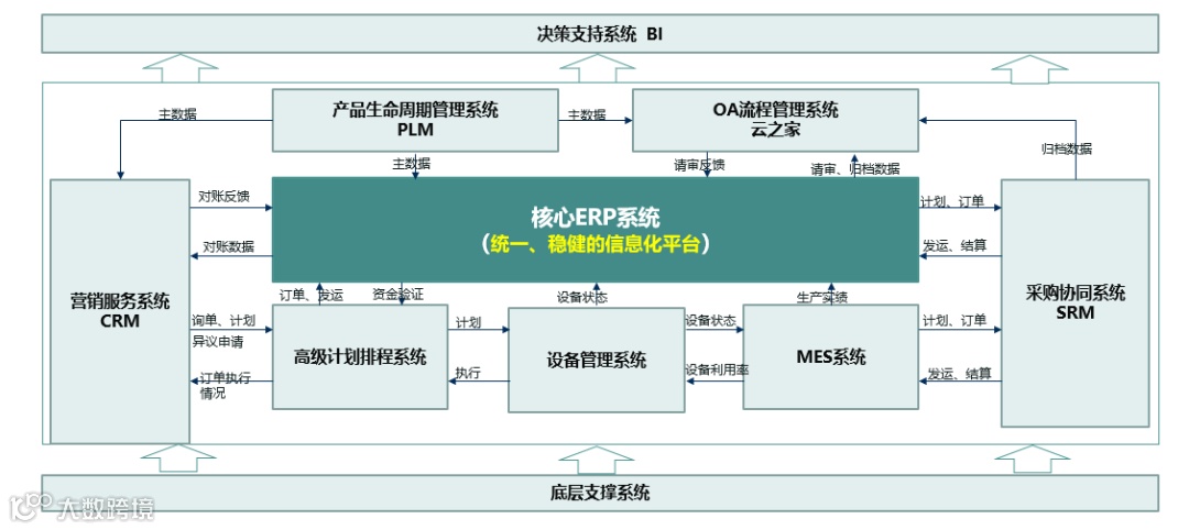 在数据治理方面,搭建统一的数据中心管理各子公司的数据,通过组织权限实现各公司业务数据的隔离与共享,同时规划主数据标准体系,统一客、商、料、BOM等主数据规则,实现主数据的统一管控。