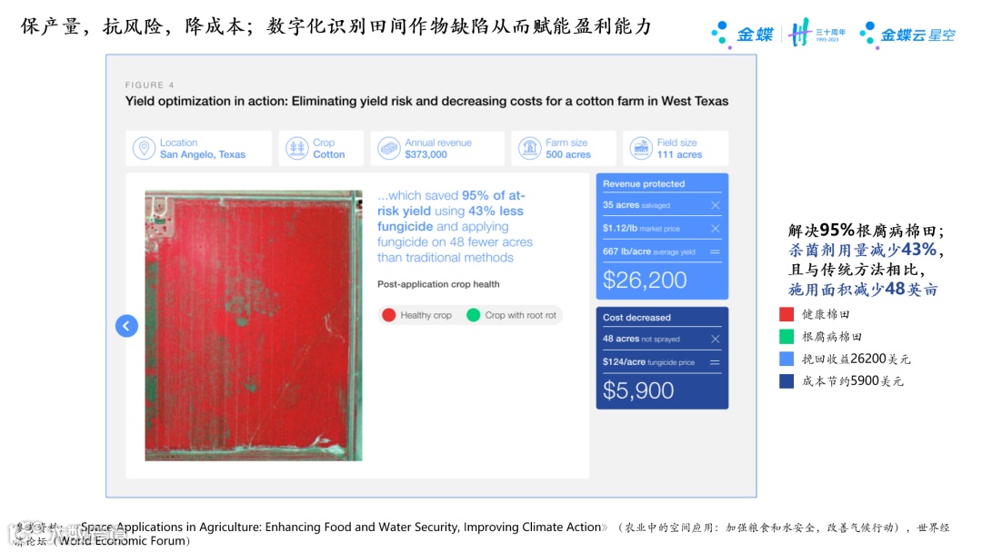 随着数字化技术的深化,基于场景的数字化判断的采用率正在增加(说明数字化正变得更懂农业和人);数字化在识别田间作物缺陷与风险(包括并不限于疾病、天气、虫害和作物健康的植物水平)并为运营赋能从而努力最大限度地提高单产与盈利的能力与价值正在变得越来越高,美国农业最终形成了从播种插秧、植保、水肥到收获的端到端能力,机械化与数字化相辅相成。其中,我们在此仅仅聚焦分享了一些基础性的底层核心能力;当然数字化的能力还包括并不限于种植方案的制定、经济性测算、调整与复盘(不同地块与方案)、天气管理与预警、生育期种植模型、设备管理、金融与保险、智能碳汇等等,我们就不赘述了。