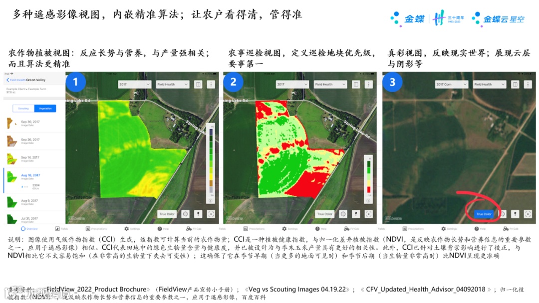 ▶ 多种视图:提供多种视图让农户直接感知农作物状况并及时做判断,从而通过持续改善来控制最终的收成与风险;让农户更聚焦,管理更精准、高效