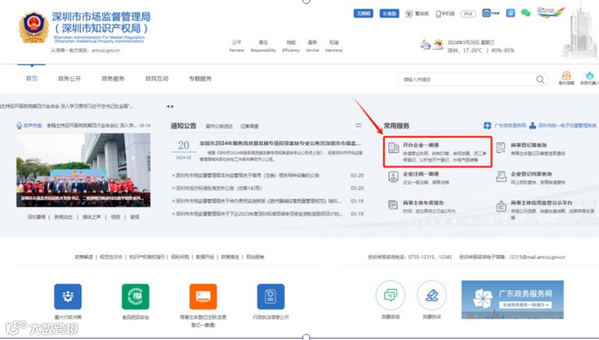 1、进入深圳市监局https://amr.sz.gov.cn/ 网站提交申请。