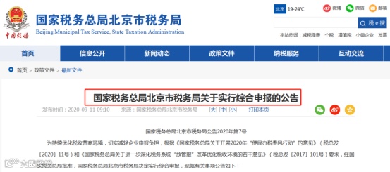 为持续优化税收营商环境,切实减轻企业申报负担,根据《国家税务总局关于开展2020年“便民办税春风行动”的意见》(税总发〔2020〕11号)和《国家税务总局关于进一步深化税务系统“放管服”改革 优化税收环境的若干意见》(税总发〔2017〕101号)要求,经国家税务总局批准,国家税务总局北京市税务局决定实行综合申报,现就有关事项公告如下: