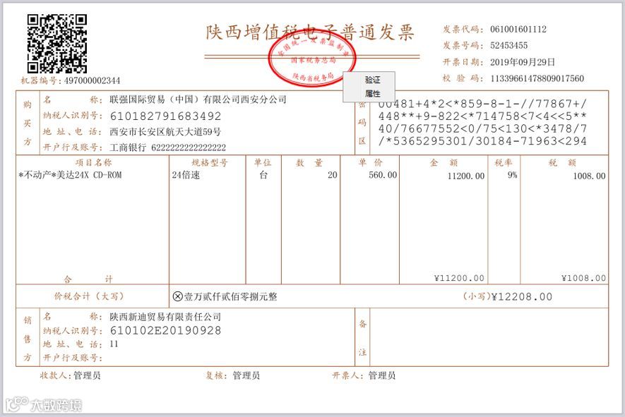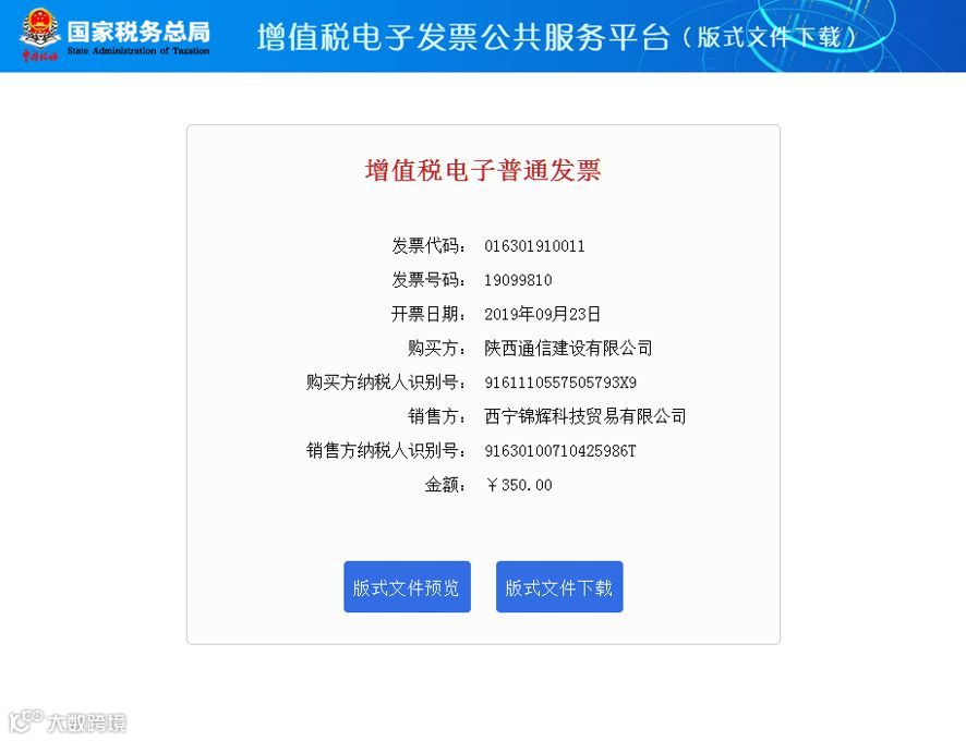 附件:通过增值税电子发票公共服务平台开具的增值税电子普通发票票样