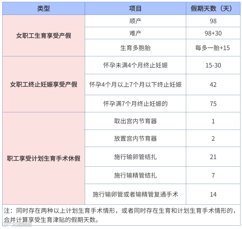 ②同时存在两种以上计划生育手术情形,或者同时存在生育和计划生育手术情形的,合并计算享受生育津贴的假期天数