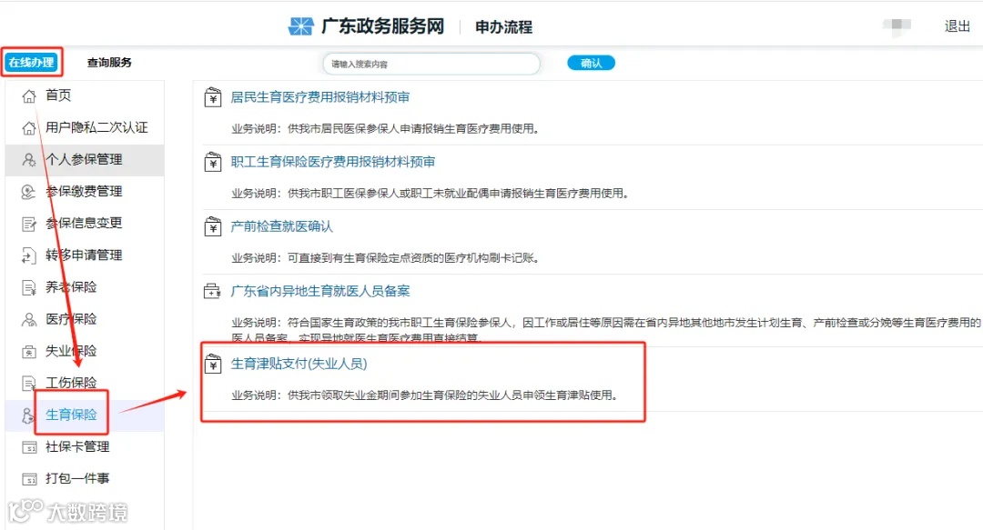 1.网页端【广东政务服务网】搜索【生育津贴支付】
