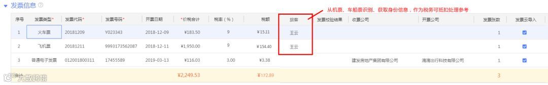 2.在发票信息增加旅客信息,以便拍照识别机票、火车票及车船票旅客信息,与报销人校验一致,企业的保证可抵扣处理合法合规。