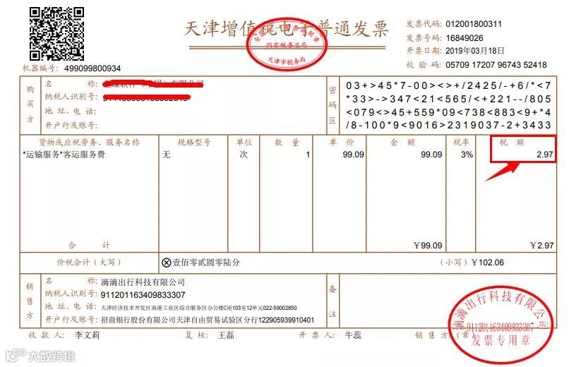 一、取得国内运输服务的电子发票(如下),按发票上注明的税额抵扣